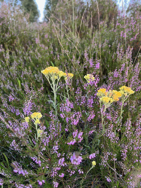 Das Schönste an der Heide ist natürlich die Heide, genau gesagt die Pflanze Calluna vulgaris, deren violette Pracht zurzeit wieder Scharen von Besuchern anzieht. Aber in der Heide blüht noch viel mehr! Bei einer Abendexkursion bei Wesel Anfang August entdeckte unsere Co-Vorsitzende Elke Jander gemeinsam mit Teilnehmenden 35 Pflanzenarten – darunter eine Rarität: die Sand-Strohblume, die bislang nur in Ostdeutschland und am Oberrhein vorkommt.